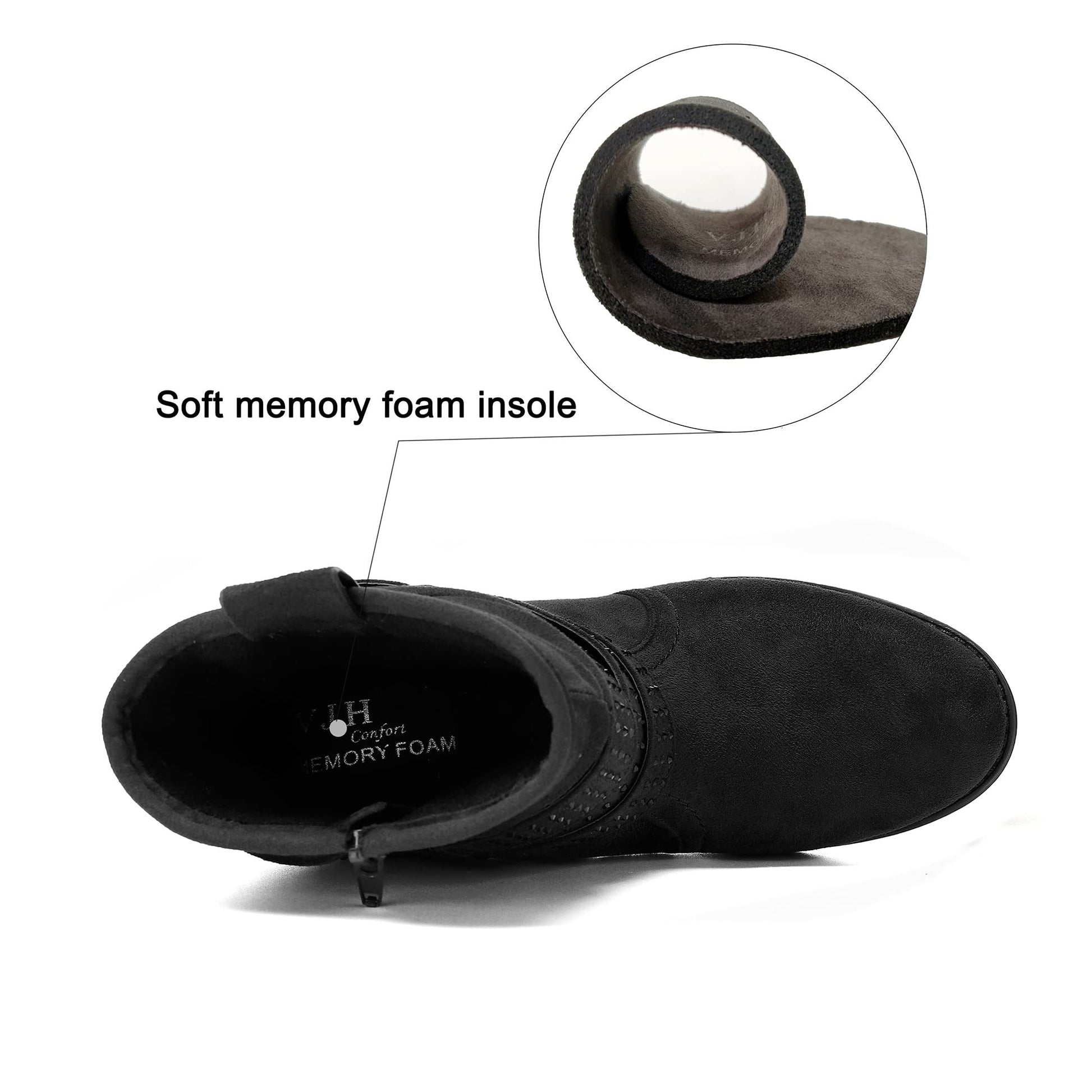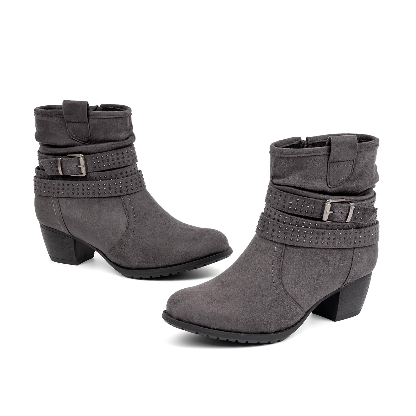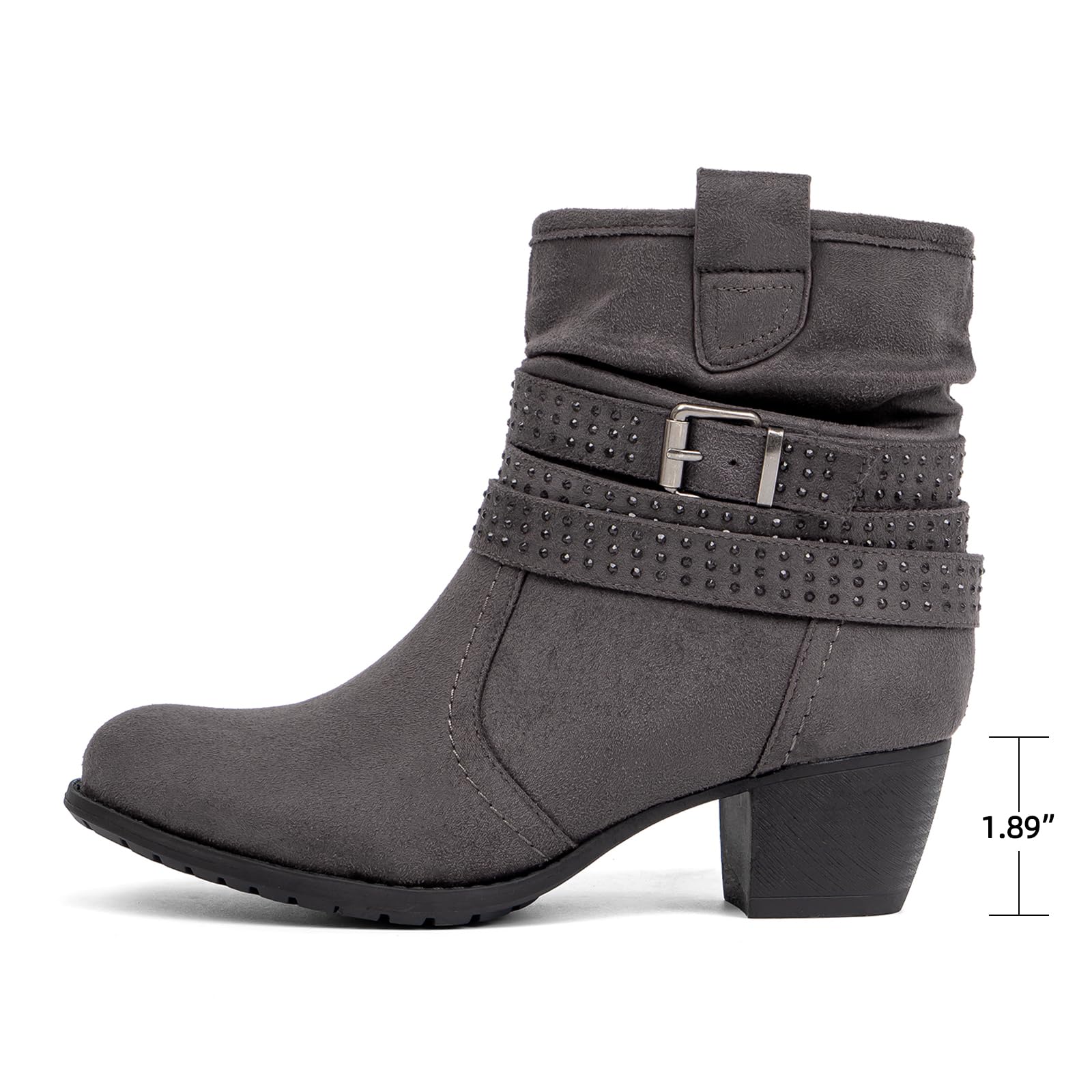 Women's Mid Calf Boots,Round Toe Comfort Low Heel Slouchy Dress zip booties with Jeweled strap