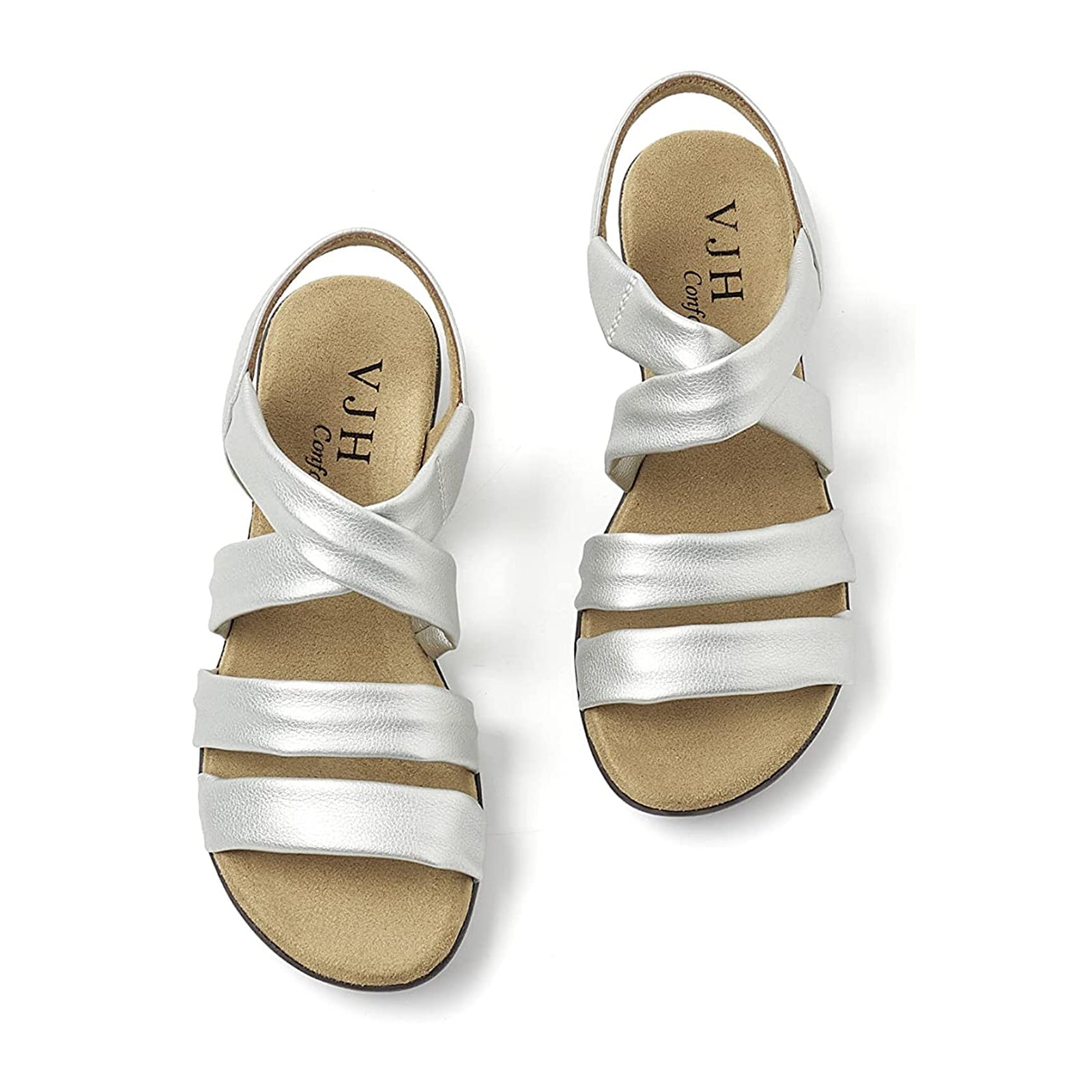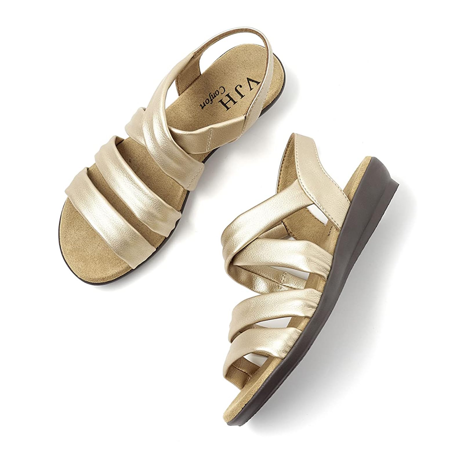 VJH confort Women’s Flat Sandals, Soft Straps Slip-on Open Toe Light Weight Elastic Slingback Comfort Casual Walking Sandals