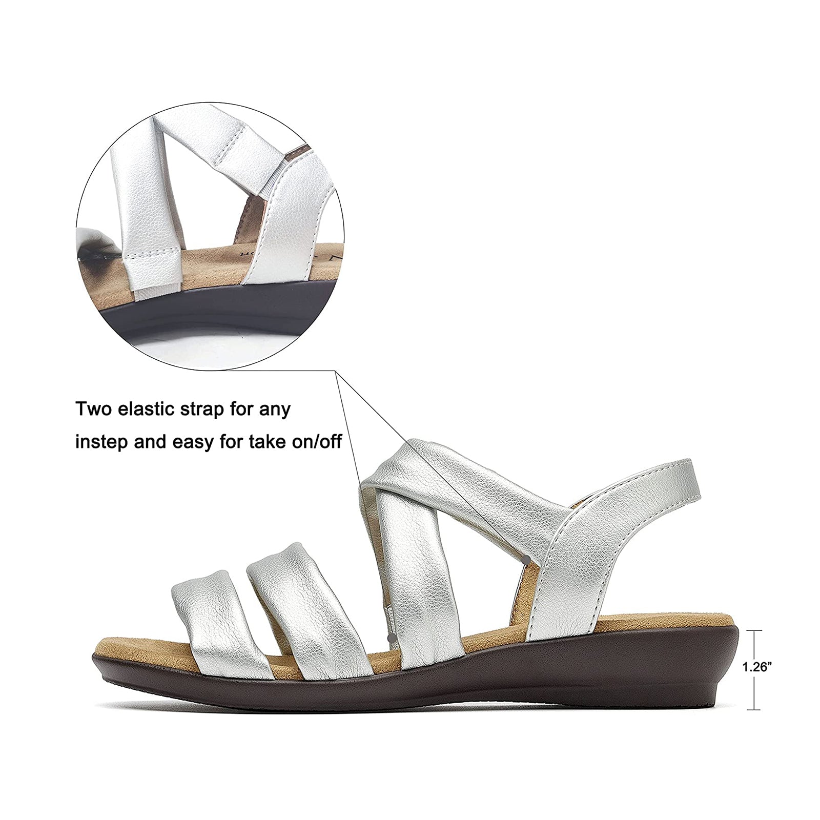 - STYLlSH DESIGN: Simple but stylish open-toe sandals made with soft faux leather can match with any summer wearing such as capris, jeans or dress,etc., perfectly fit shopping, daily,traveling,walking,beach, wedding, evening party, festival and so on.