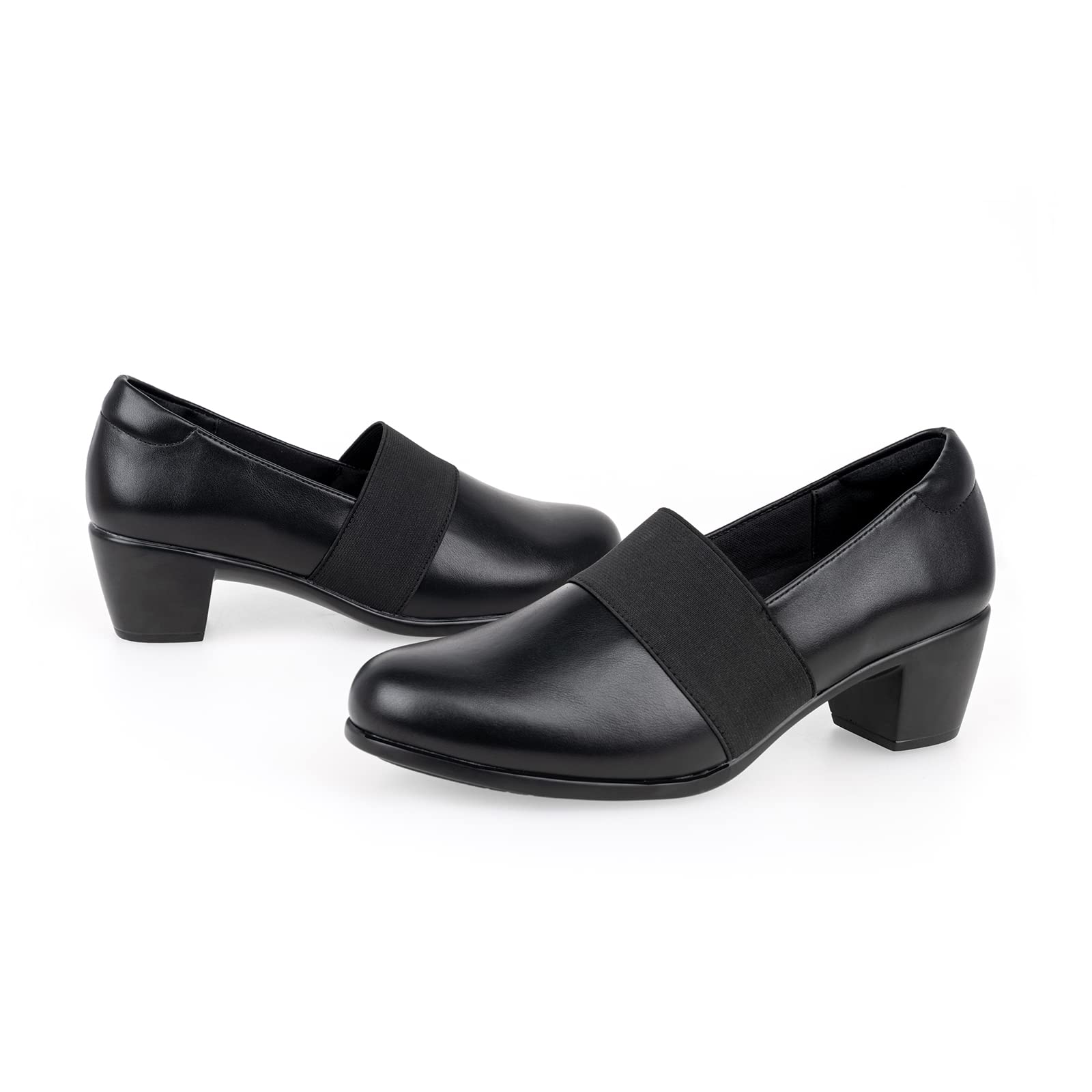 • STYLISH DESIGN: Elevate your style with these classic dressy shoes , the round toe with perfect low block heels featuring a comfortable and elegant design that elongates your legs and complements any casual or formal outfit.