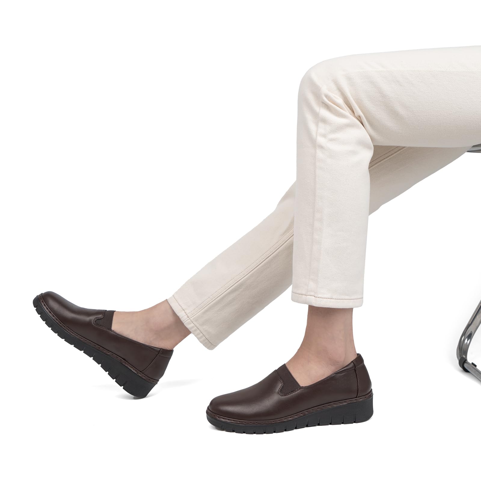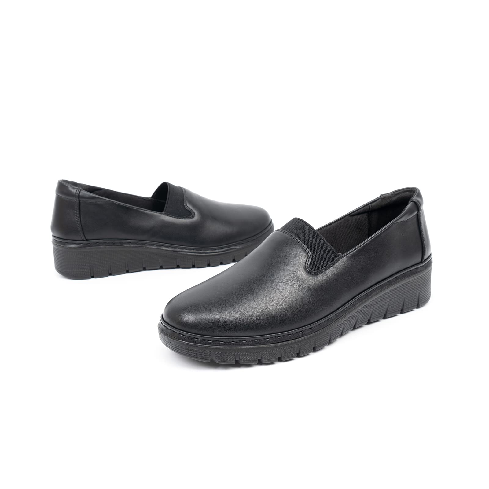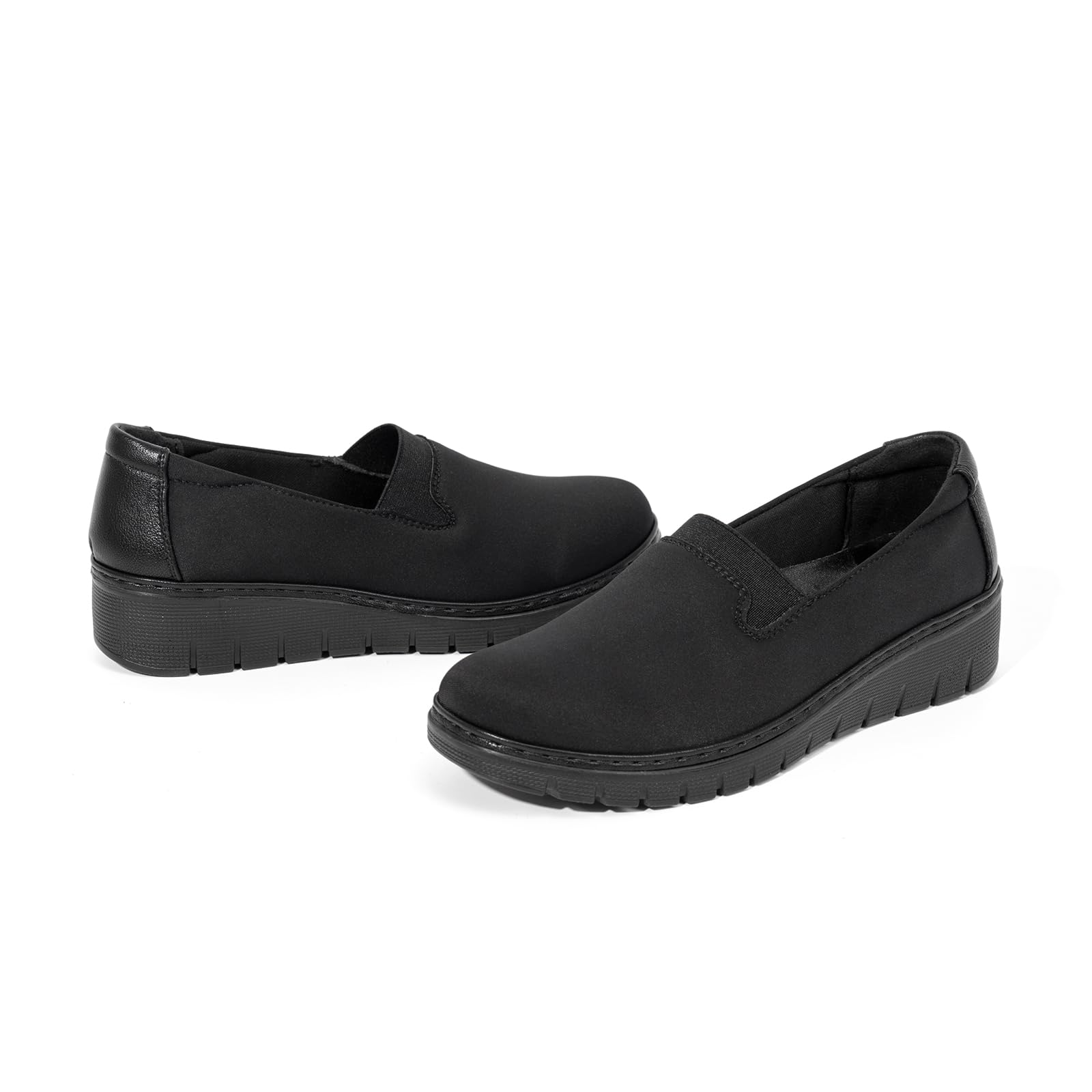 LIGHTWEIGHT:The Non-slip shock absorbing sole is make of ultra-lightweight PU which is in flexible and lightweight. The 1.57” height low wedge heel make you standing and walking more stable and comfortable.