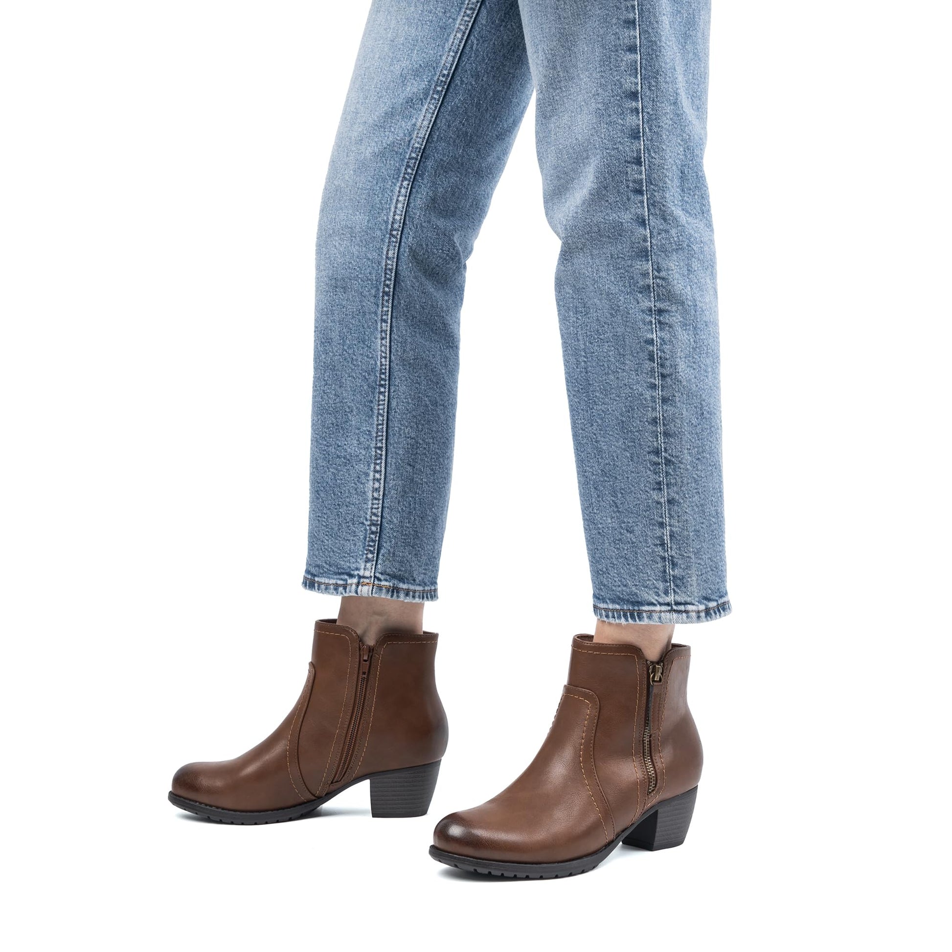STYLlSH DESIGN: Classic round toe short boots for women designed with leather-like material and low heels are perfect paired with any outfit in spring,autumn,winter,such as dresses, skirts, leggings,jeans,shorts,denim,sweater,skinny pants,suit,uniform,ect.