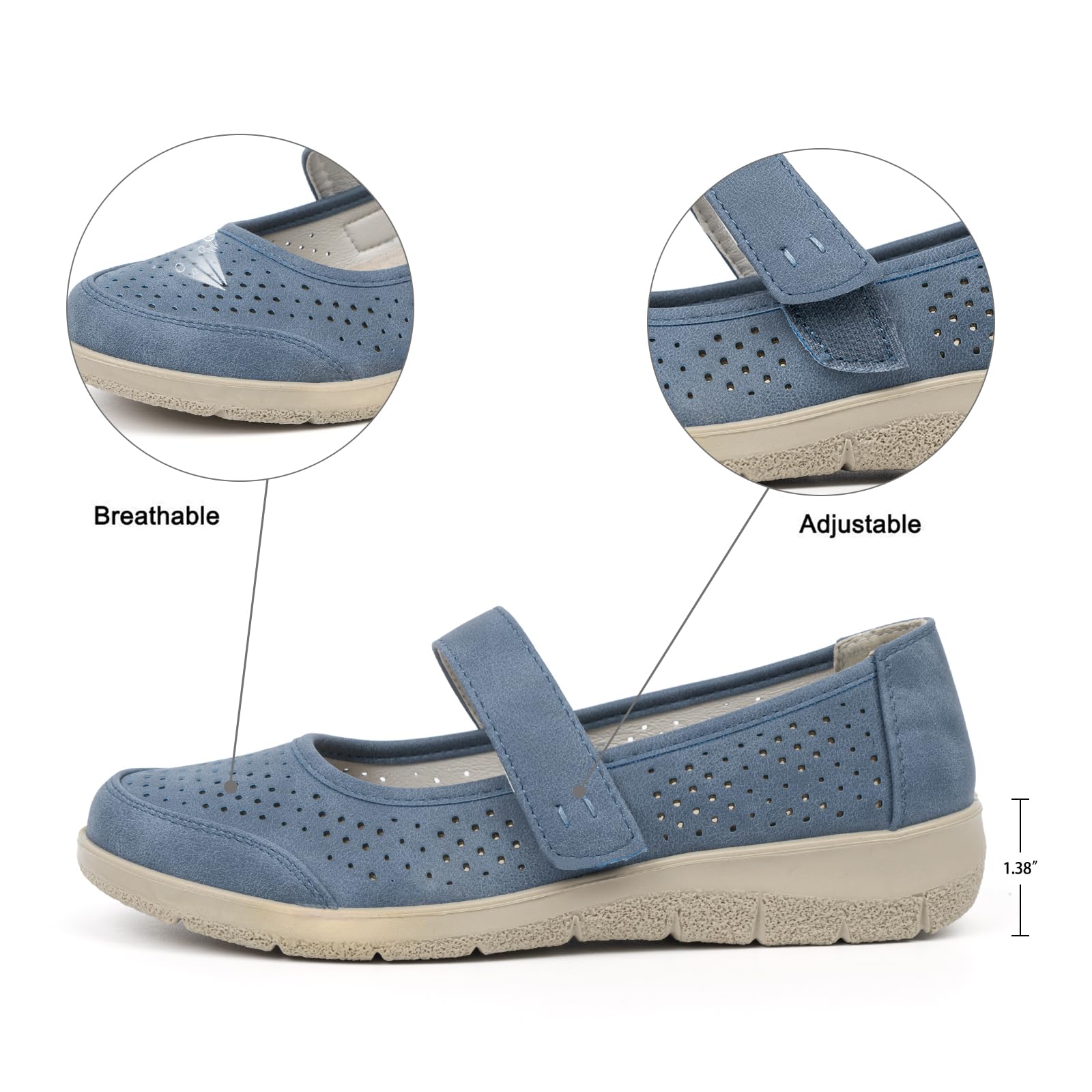 - BREATHABLE:Stay cool and comfortable all day long with our breathable round-toe design, featuring small holes that allow air to circulate around your feet.