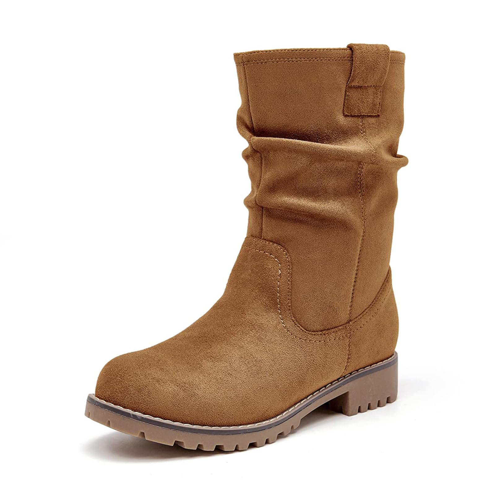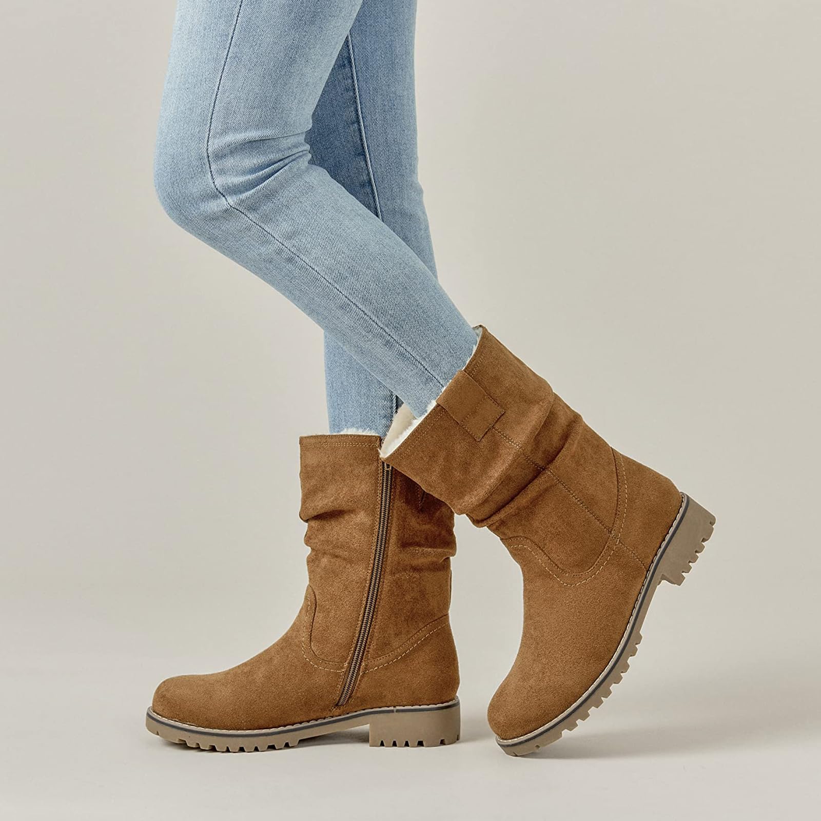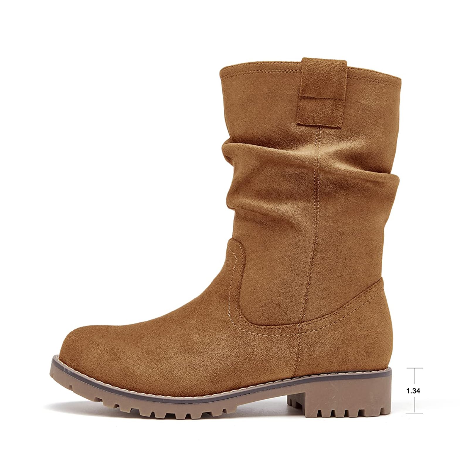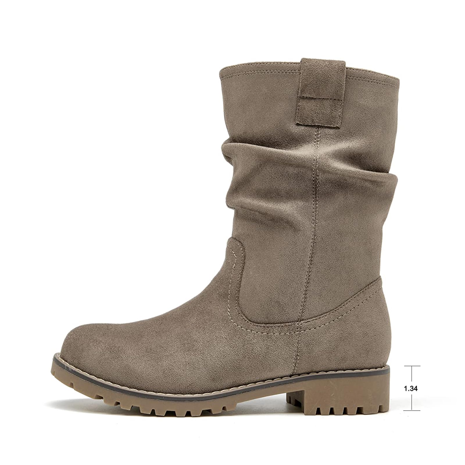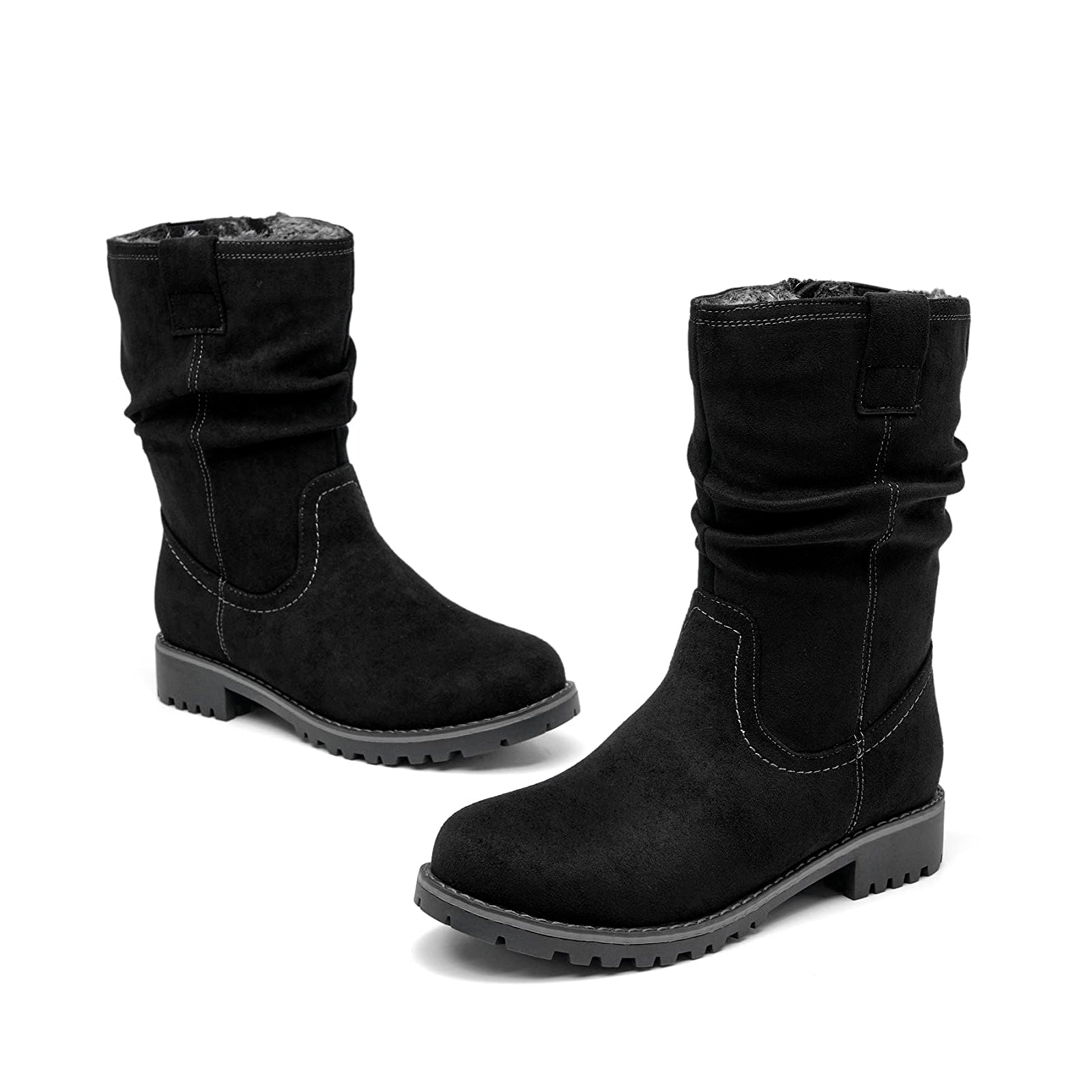 - SOFT WARM:This vegan mid calf boots in faux suede upper is with soft touch.The soft fur lining is for skin friendly and keep you foot warm from coldness.