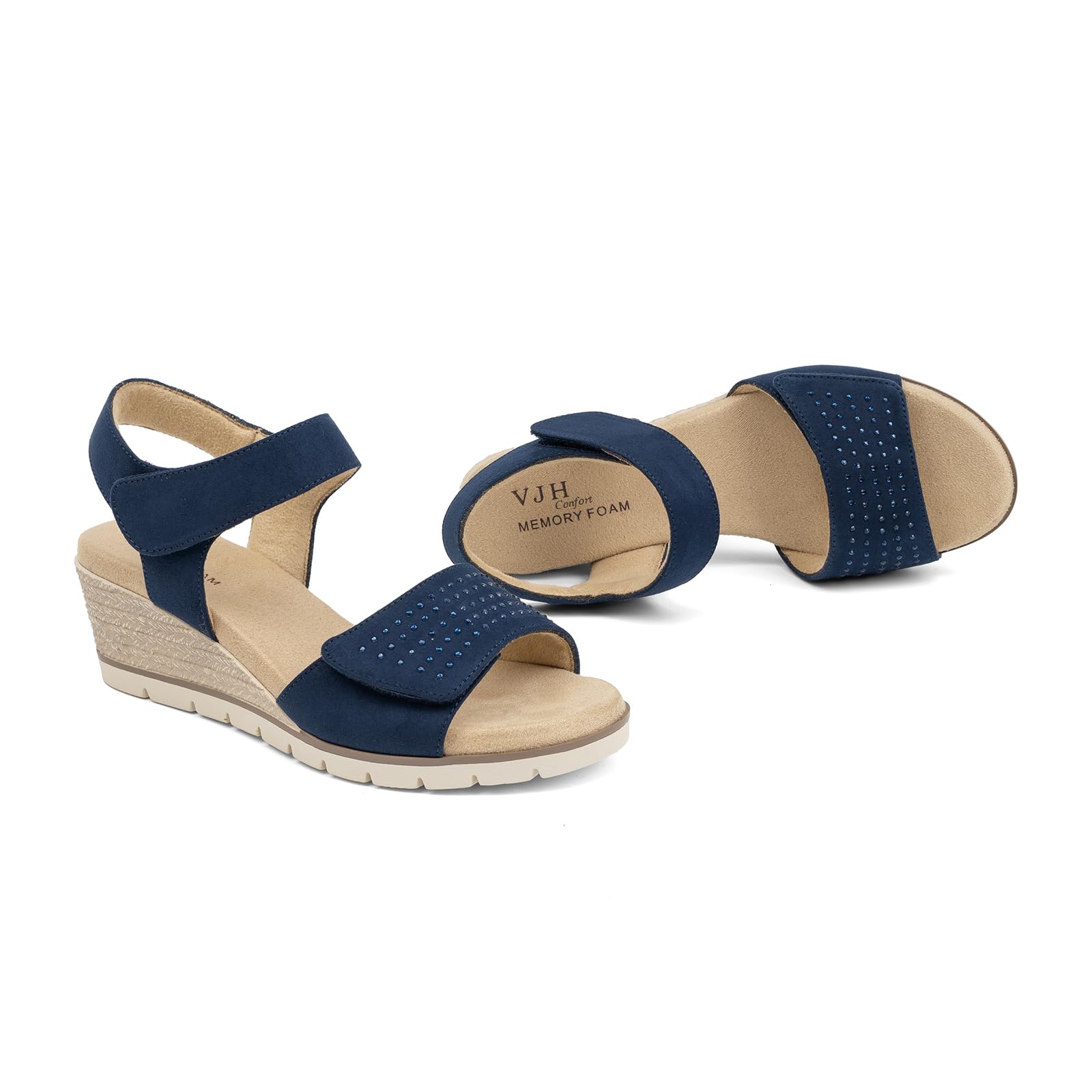 VJH confort Women's Wedge Sandals, Comfort Memory Foam Rhinestone Sandal with Adjustable straps