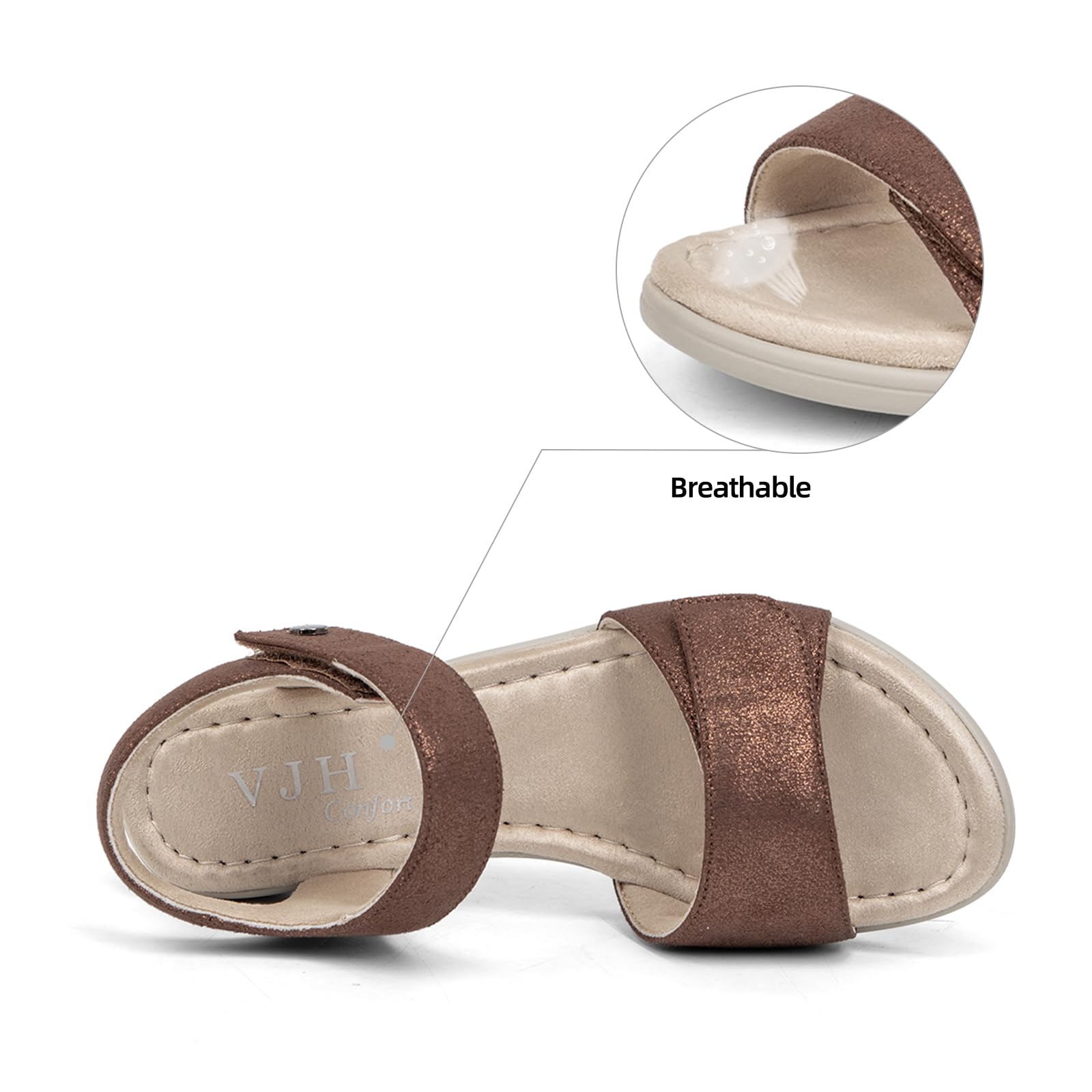 VJH confort Women's Wedge Sandals Low Heel Comfortable Hook-and-Loop Strap Open Toe Platform Summer Shoe